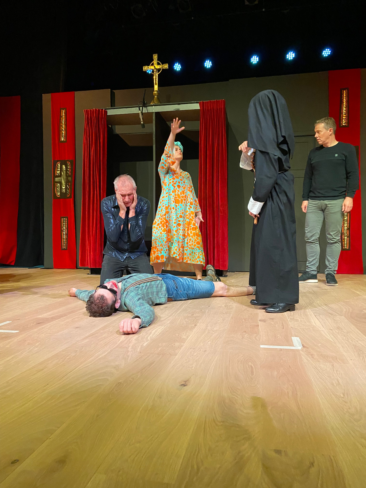 In 2022 speelden we “Het laat de pastoor koud”, geschreven door Edward Bastiaansen (die kwam kijken!) en regie door John Verhees. Het was voor ons de eerste keer dat we het in het nieuwe MFA Hart van Hapert speelden en een daverend succes: een aantal voorstellingen waren helemaal uitverkocht!